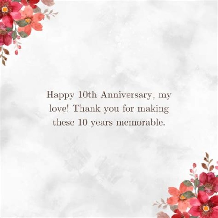 10th anniversary sayings for husband are special messages or quotes that are often used to express love, appreciation, and commitment on the occasion of a couple's 10th wedding anniversary.