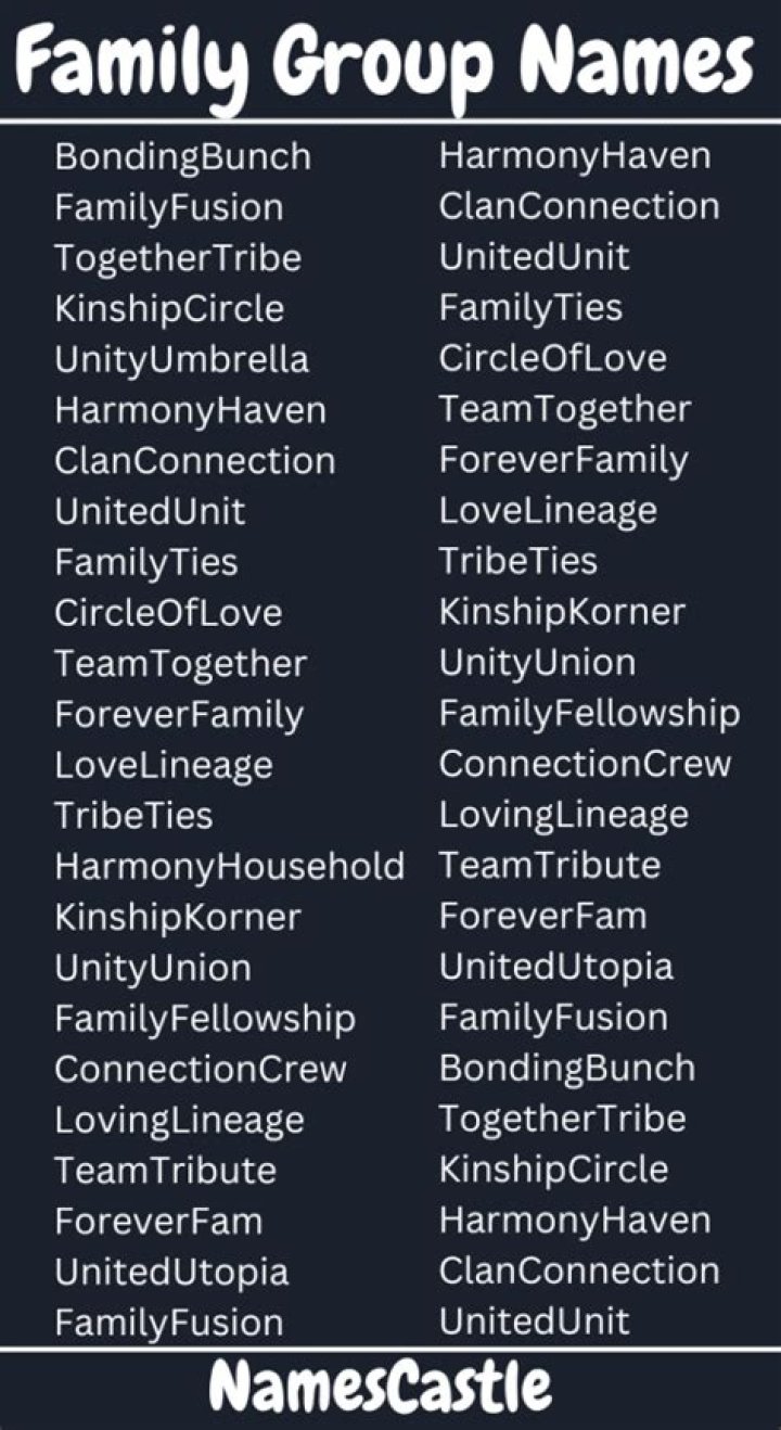 In the context of "family names for group," collective nouns play a crucial role in facilitating clear and concise communication about groups. A collective noun, such as "family," "team," or "class," encapsulates a set of individuals sharing specific characteristics or relationships. By using collective nouns, we can avoid the need to list each individual member, making our language more efficient and less cumbersome.