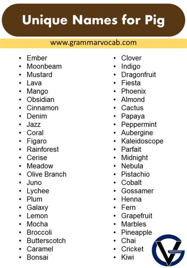 Tip 4: Be creative. There are no rules when it comes to choosing a pig name. You can choose a name that is traditional, unique, or even funny. The most important thing is that you choose a name that you love and that fits your pig.