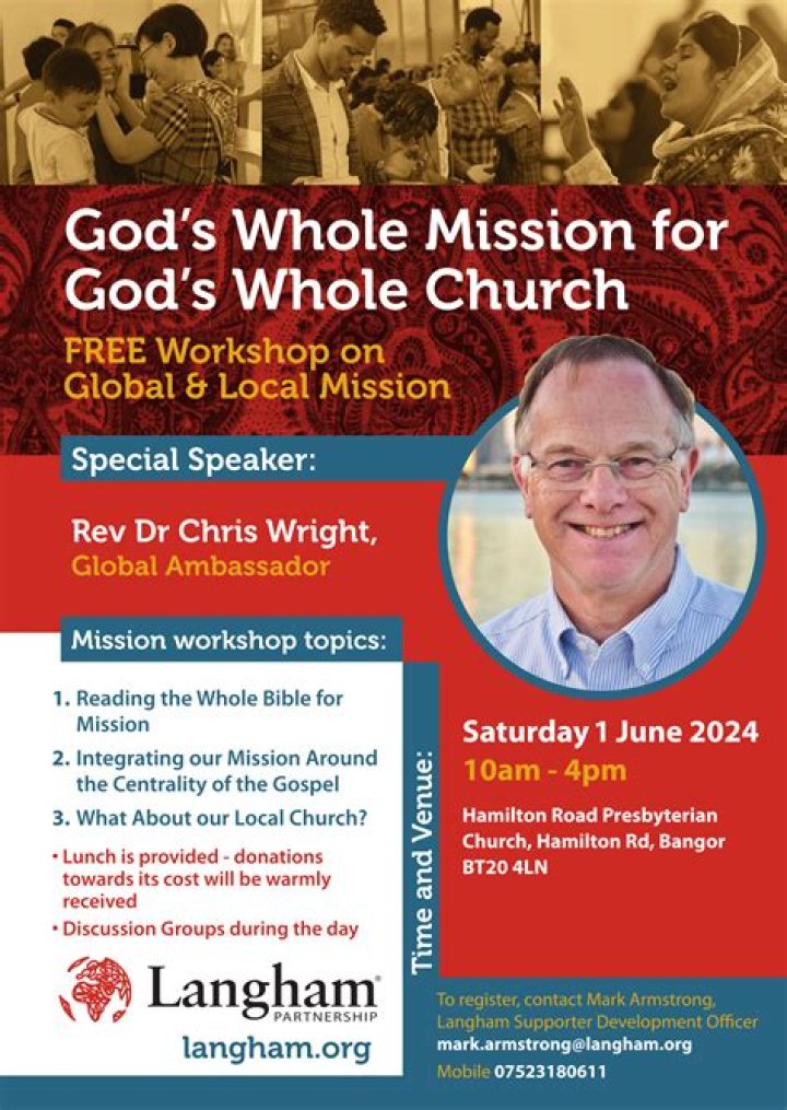 Evangelism Chris Wright is committed to sharing the gospel with people around the world. He has preached the gospel to millions of people through his sermons, books, and conferences. He is also a strong supporter of missions and evangelism efforts around the world.